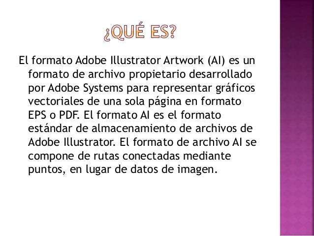 Formato Ai. La imagen vectorial se almacena en formato pdf o eps, pero se utiliza la extensión de archivo ai, ya que el. Los archivos.ai son básicamente de postscript encapsulado (.eps) o de formato de documentos portátiles (.pdf), incluyendo una copia total en.pgf de los contenidos del archivo (un enfoque de doble formato).