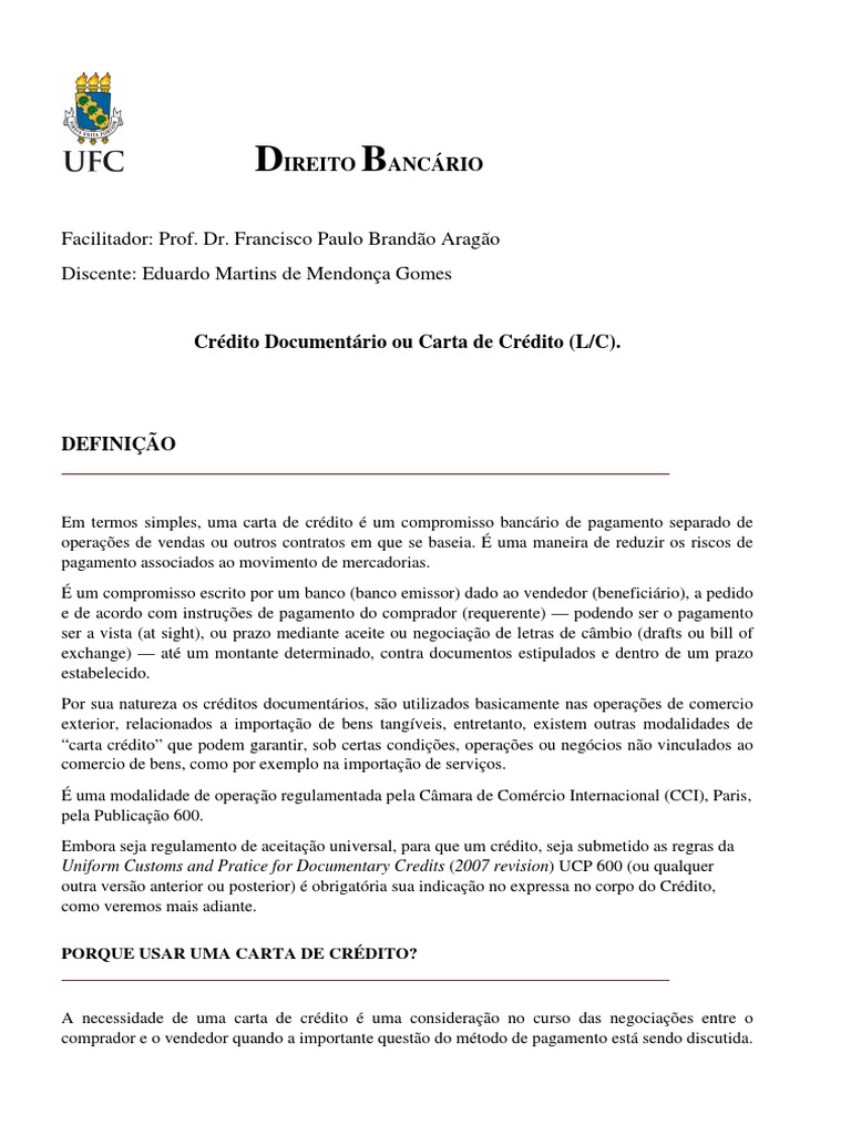 Credito Documentario Pdf Credito Financas E Administracao De Capital