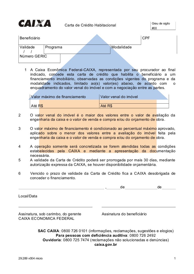 Carta De Credito Imobiliario Caixa Economica Federal