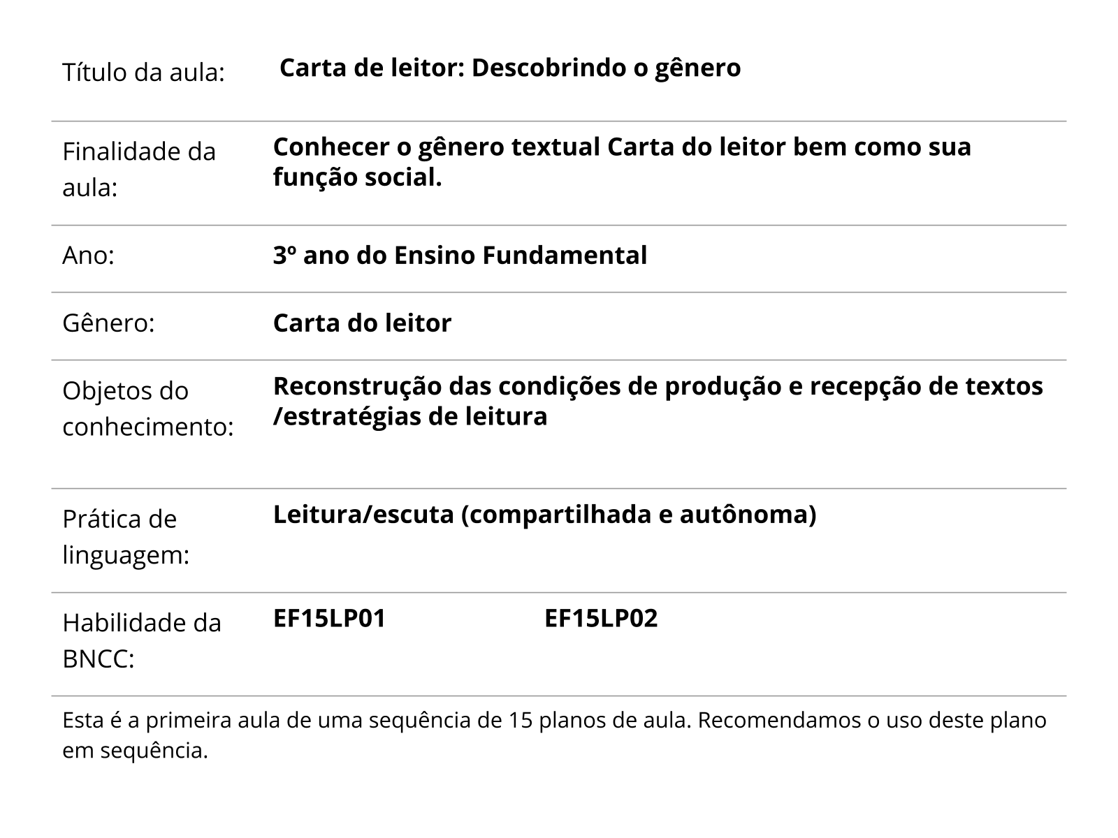 Carta De Leitor Descobrindo O Genero Planos De Aula 3º Ano Lingua Portuguesa