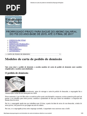 Modelos De Carta De Pedido De Demissao Emprego Negocio Pdf Banco De Horas Emprego